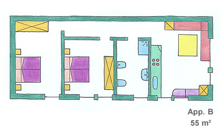 We have two kind of apartments at your disposal: apartments A, big, ideal for 6-8 persons: three bedrooms, two bathrooms, kitchen, living room. Apartments B: ideal for 3-4 persons: two bedrooms, combined kitchen and livingroom. wifi gratis